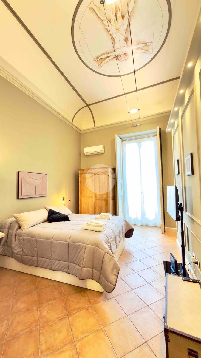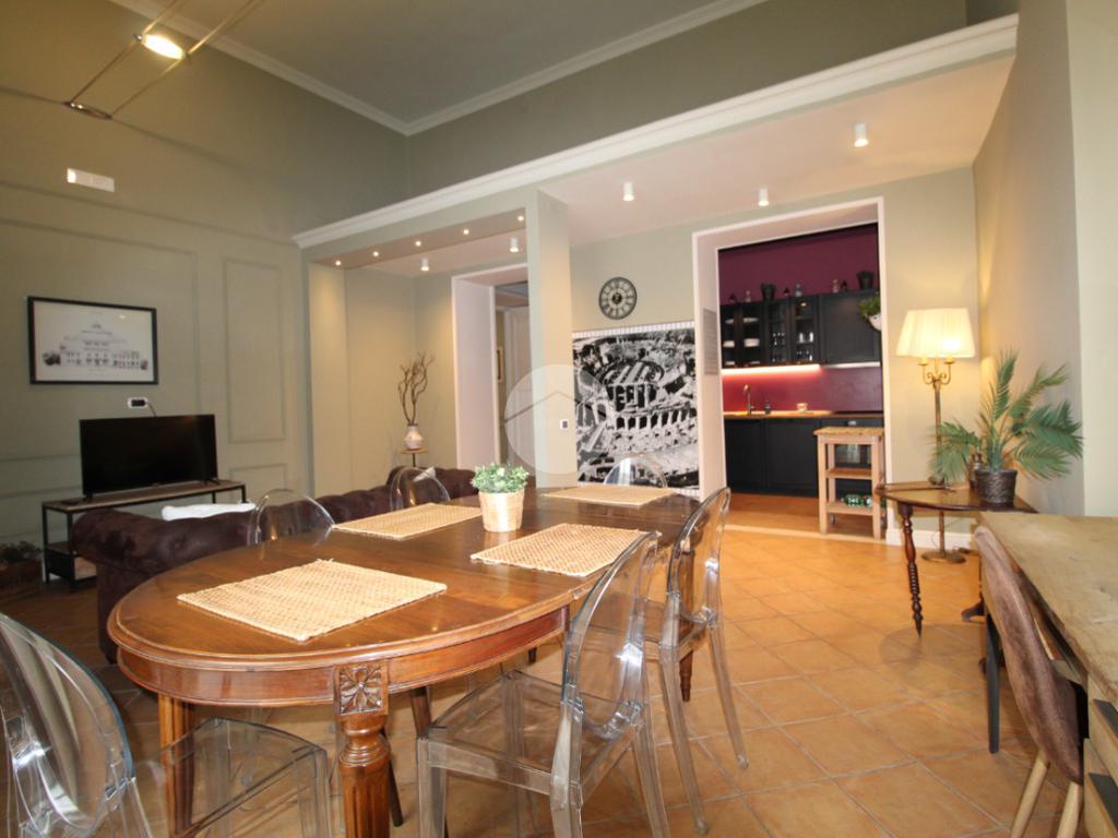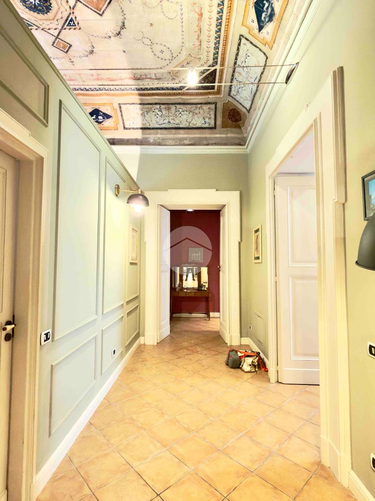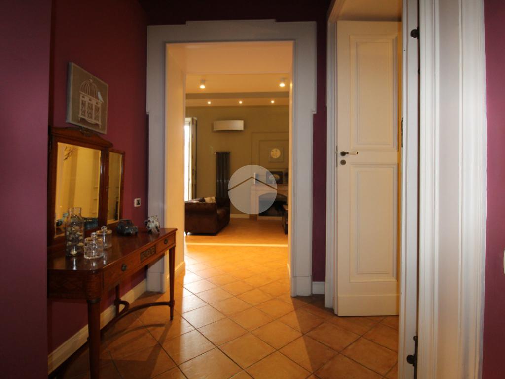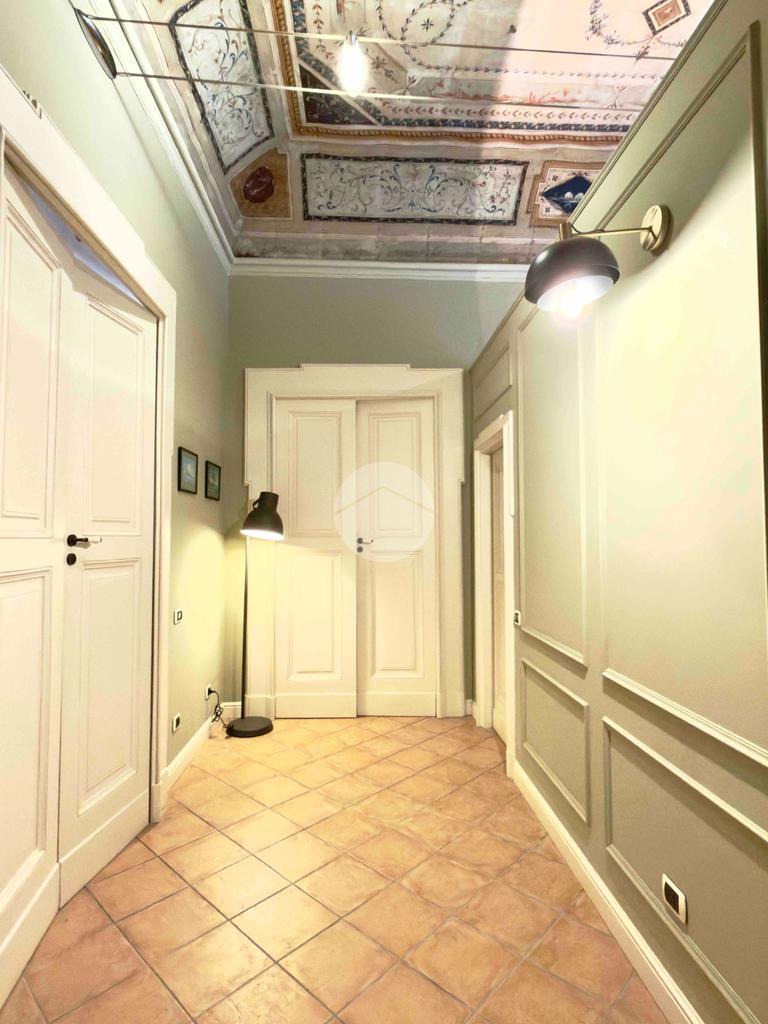L' agenzia Tecnorete propone in vendita, esclusiva, un affascinante appartamento (recentemente ristrutturato nel 2022) situato in un palazzo storico, Questa residenza di ampia metratura, unisce il fascino dell'antico con il comfort del moderno, offrendo ampi soffitti e un doppio affaccio che garantisce luminosità e ventilazione naturale. L'appartamento ha accesso in un accogliente ingresso che anticipa la zona giorno; soggiorno con camino a legna, sala da pranzo/cucina, tre spaziose camere da letto di cui una con cabina armadio, due bagni e un'ulteriore lavanderia/ripostiglio. Gli interni sono stati aggiornati con infissi di qualità e una caldaia efficiente, mentre l'aria condizionata assicura un ambiente confortevole tutto l'anno. Balcone con affaccio interno al cortile e balconi d'affaccio su strada. La proprietà include il parcheggio nel cortile, una comodità rara in centro città. Questa casa caratteristica rappresenta una soluzione funzionale per chi cerca un'abitazione che coniughi storia e modernità.